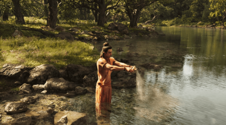Some graphics in the trailer suggest Rama administering Jatayu’s final rites. Jatayu, a long-time friend of King Dasharatha, dies while attempting to save Sita from Ravana’s abduction. To celebrate his unselfish and valiant sacrifice, Rama administers his final rites with the same reverence as he would for his father.