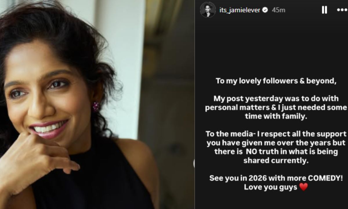 Jamie Lever has now put an end to all the confusions around her stepping away from social media after the backlash on Tanya Mittal’s reel. She spoke about the now deleted post, and stated that it had do with some personal matters, and also that she needed some quality time with her family. Addressing the media, Jamie Lever acknowledged their support but dismissed any claims or conclusions made around her decision. She signed off by writing, “See you in 2026 with more comedy”.