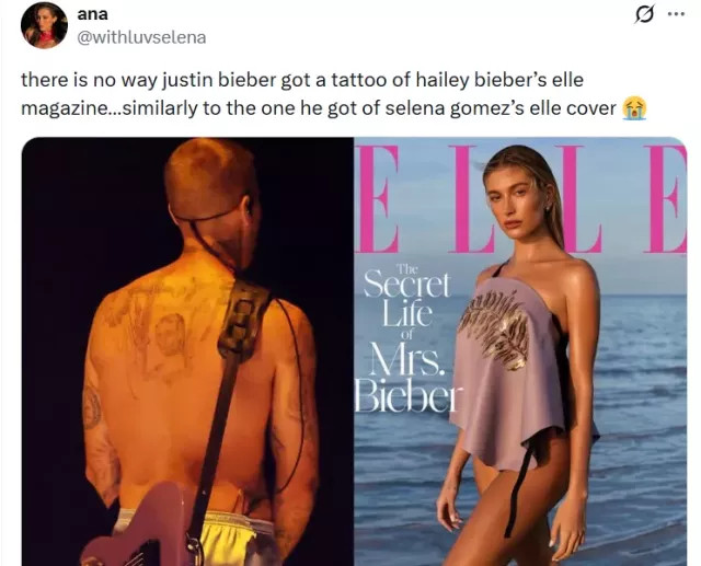 The latest tattoo joins Justin’s extensive collection, which includes a cross, a lion, a bear, a rose, and more. Interestingly, many noticed that the singer chose the same magazine cover for his wrist tattoo, which was previously thought to be for his ex-girlfriend, Selena Gomez. Justin Bieber’s tattoo of Hailey Bieber’s Elle magazine, similar to the one he received of Selena Gomez’s cover from the same magazine, quickly became a topic of discussion.