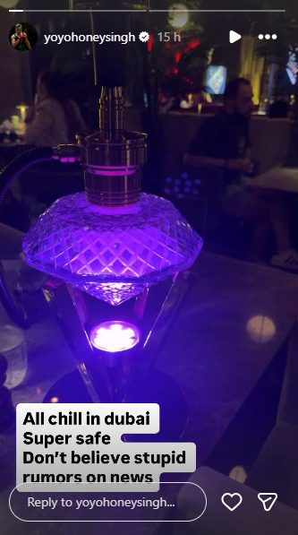 On Wednesday, March 4, Honey Singh took to his Instagram stories and shared a video of what seemed to be from a restaurant. The clip showed him having a meal, and in the caption, he wrote, “All chill in Dubai. Super safe. Don’t believe in stupid rumours in the news.” Just a day before, he also shared a video from his recording studio in Dubai, looking calm and focused while being surrounded by his team. In the caption, he said, We’re safe in Dubai, guys. Working.”
