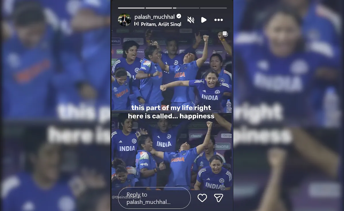 Palash Muchhal took to his Instagram stories and shared a picture of Team India and wrote, “This part of my life right here…is called happiness.” Earlier this month, at an interaction held at the State Press Club, Palash Muchhal confirmed his marriage to Smriti. When asked about his relationship with Mandhana and their shared memories, the Indore-born music director hinted at her soon becoming part of his family and playfully remarked that he had just given reporters their headline. He also extended his best wishes to Indian captain Harmanpreet Kaur and Smriti Mandhana, expressing his hope for the team’s continued success.