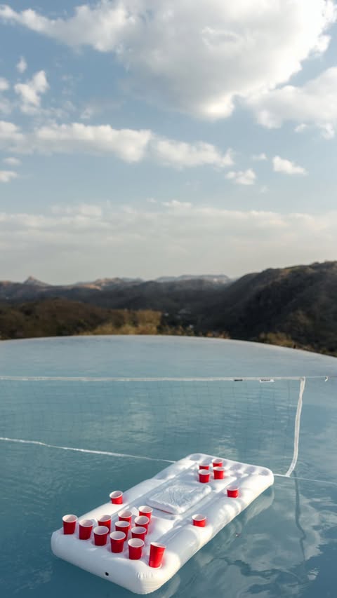 The picture shared by Vijay Deverakonda showed a picture focused through a volleyball net with friends in the water and a ball mid-air, hinting at a friendly competition. Another picture showed a floating drink station featuring red chips and a panoramic landscape beyond the pool, capturing the celebration vibe ahead of The Wedding of VIROSH. The photographs imply that, among the grandeur of wedding planning, the couple is taking time to unwind, bond with their loved ones, and make happy memories with friends, all ahead of the formal rituals, which begin later this week.