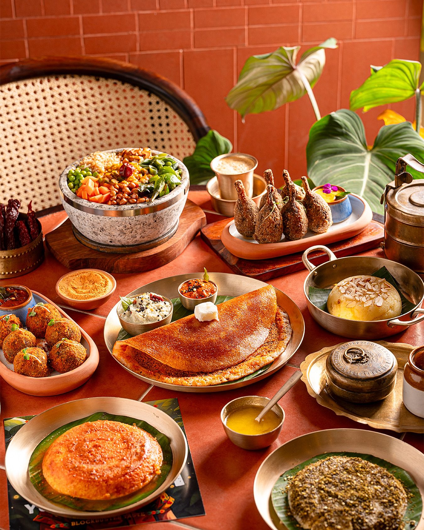 Christmas brunch at Malgudi feels like coming home, even if it’s your first time there. The smell of fresh filter coffee and warm, crispy dosa (especially the Benne Dosa, trust us) fills the air, and the plates arrive piled with comforting South Indian favourites like thatte idli, vada, and spicy chutneys that make you want in seconds. But it’s also not your usual South Indian place, go for favourites like Malgudi Picante and the Bisi Bele Bibimbap for a unique experience.