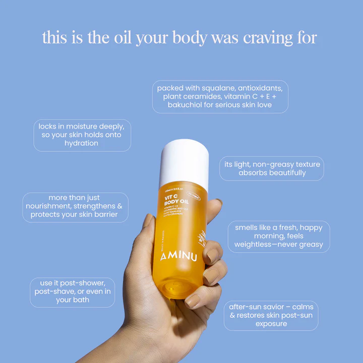 Aminu’s Vit C Body Oil will give you a glow on the go! It brightens, softens, and nourishes your skin. Plus, it’s lightweight, absorbent, and subtly scented. Use for days your body needs some extra love and nourishment.