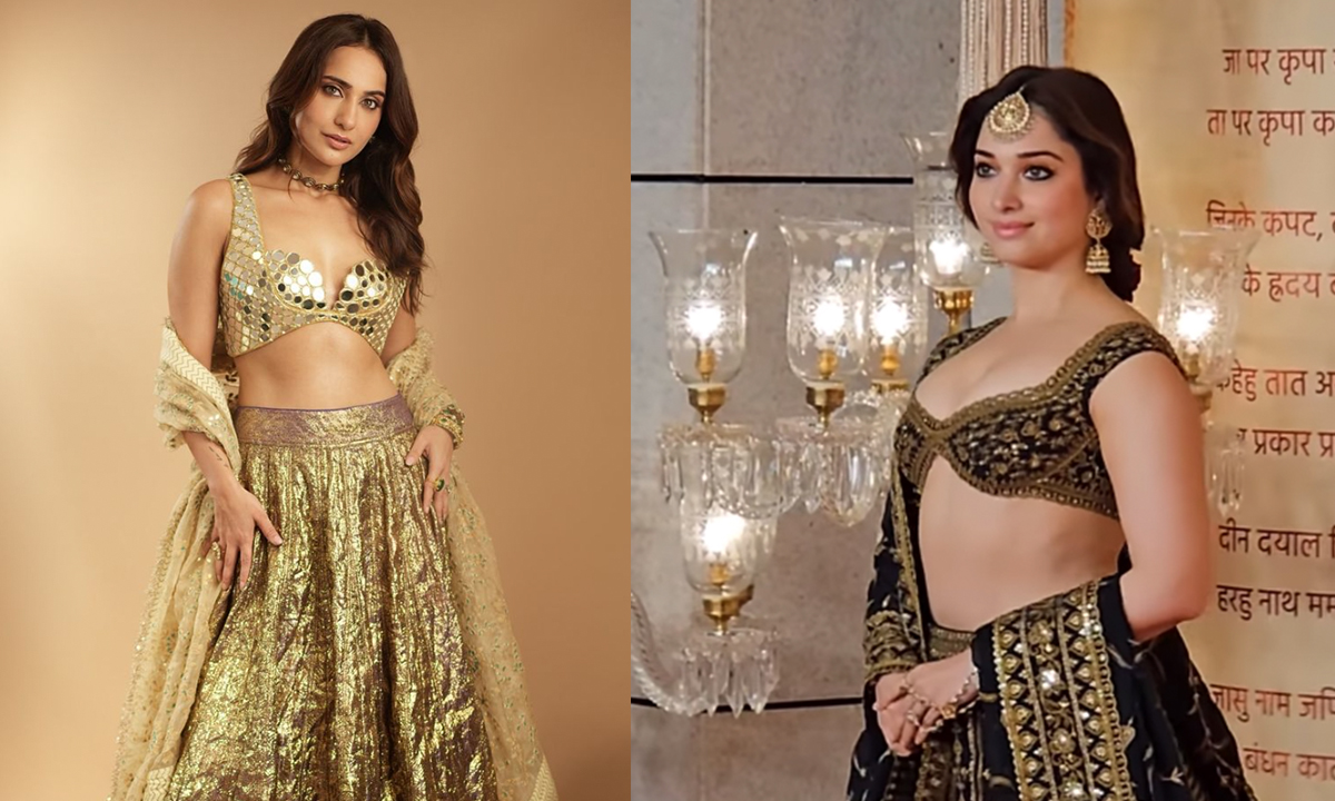 Kusha Kapila opted for a golden lehenga, Tamannaah Bhatia in a gold-black lehenga.