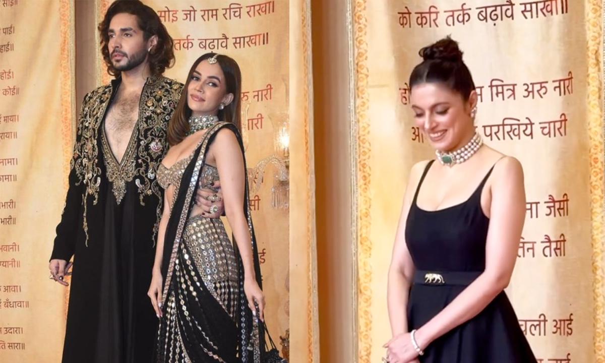Komal Pandey and Siddharth Batra twinned in black and gold. Divya Khhhosla opted for a black printed lehenga.