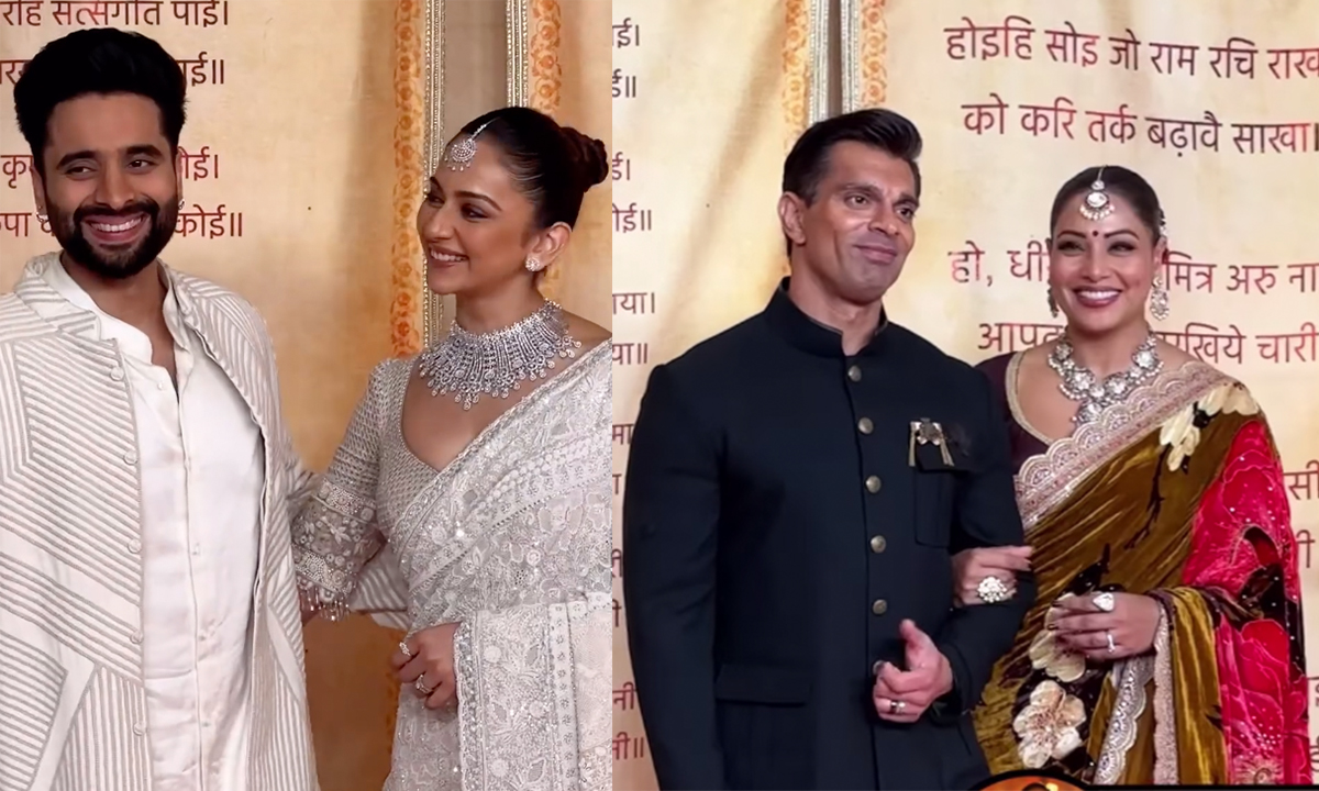 Rakul Preet Singh twinned with husband Jackky Bhagnani in white, while Bipasha Basu and Karan Singh Grover opted for matching black ensemble.