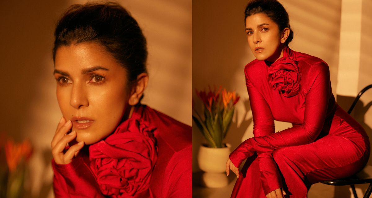 Wearing a vibrant red body-fitting gown with a large floral design at the neckline, Nimrat Kaur showed off her inner diva.