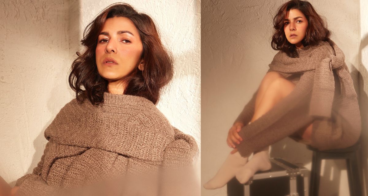 Nimrat Kaur ate and left no crumbs in her minimalist fashion exploration. She wore a beige knitted sweater with calf-length stockings for a complete look.