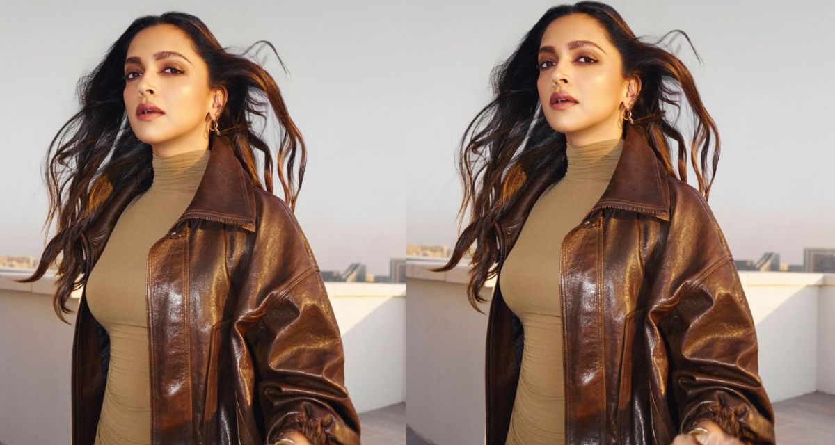 Deepika Padukone - Warm colours definitely belong to Deepika as she slays in this beige dress paired with a gorgeous brown leather jacket