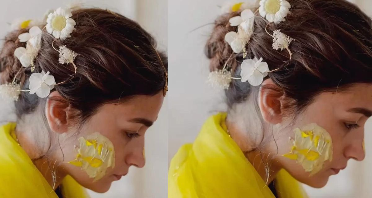 This hairstyle is perfect for brides as it is cute and holds your hair in a bun so you can have fun in Haldi!