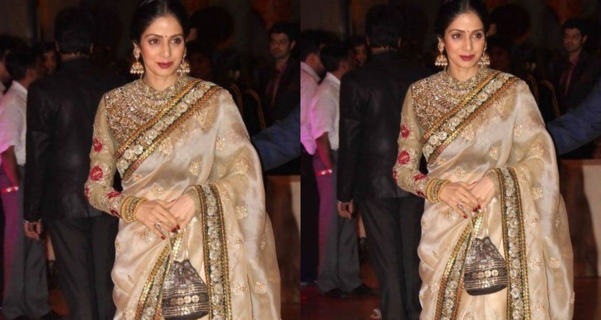 If anyone knew how to make a statement with her sarees, it was the legendary Sridevi. She even made this busy look work!