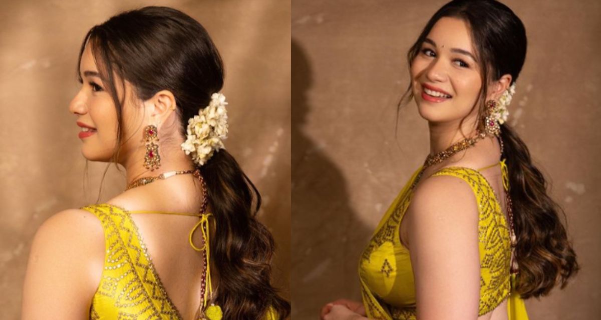 Sara Tendulkar serves a range of beautiful hairstyles and we love all of them, In this one, the addition of gajra to a simple ponytail has amped up the look.