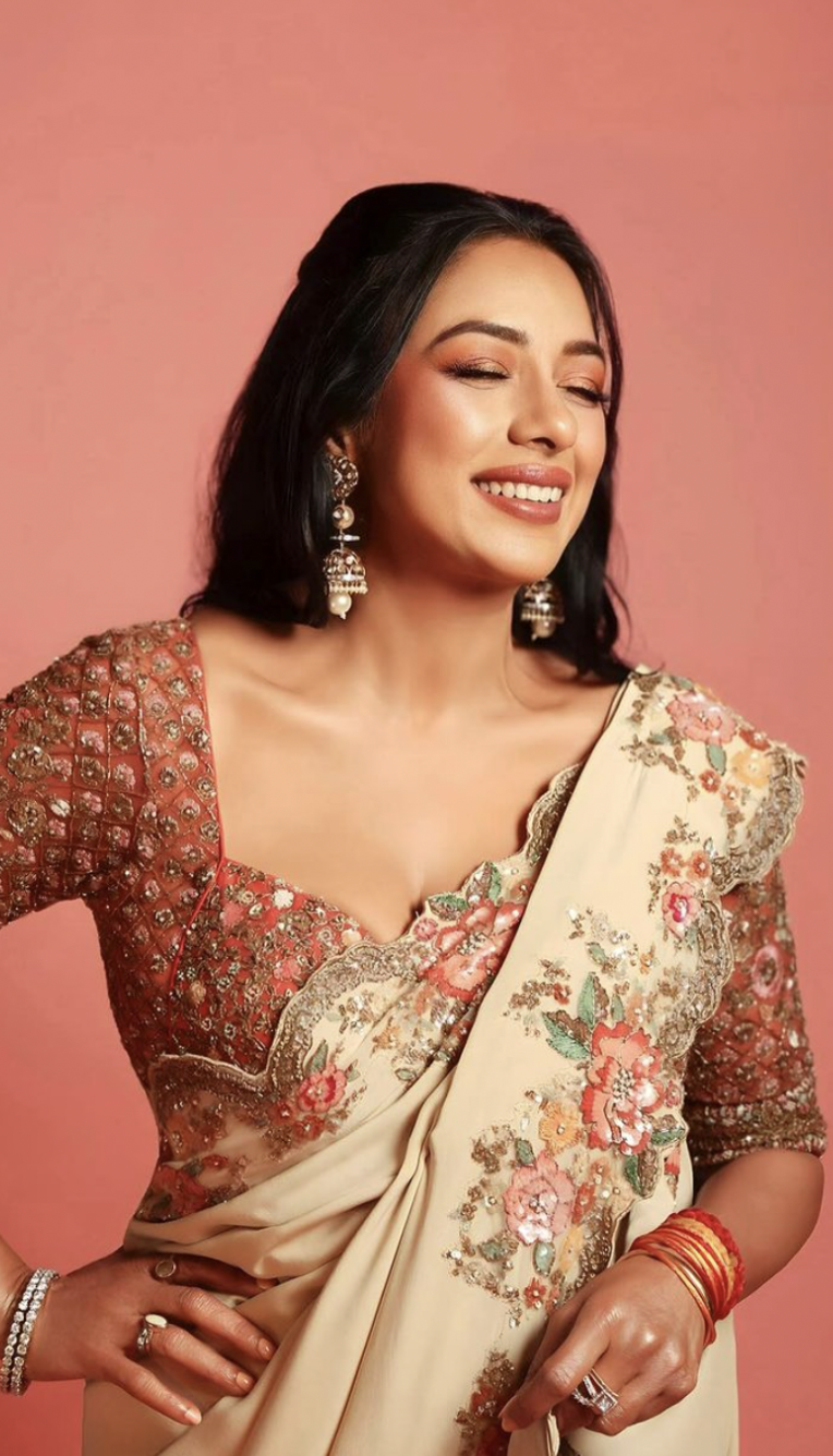 In this look Rupali Ganguly's make up looks quite pale and undone. Adding contour to this look can make it look more natural.