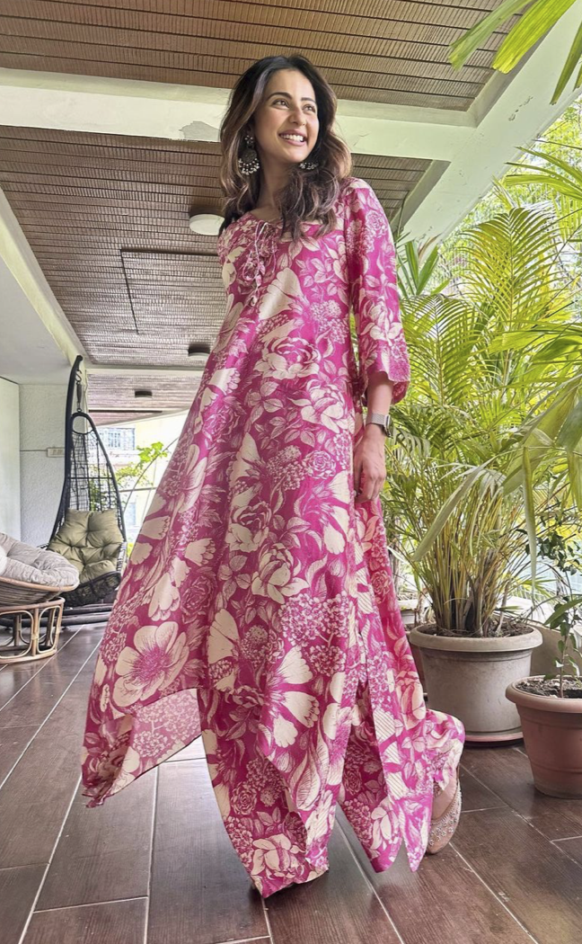 Alia Bhatt exhibiting her love for prints in a comfortable, anti-fit kurta set.