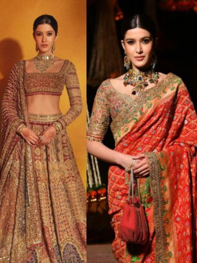 Shanaya Kapoor is often seen donning beautiful lehengas. In this, she is wearing a stunning silk one, well you can recreate a lehenga with your mom's silk saree as well!